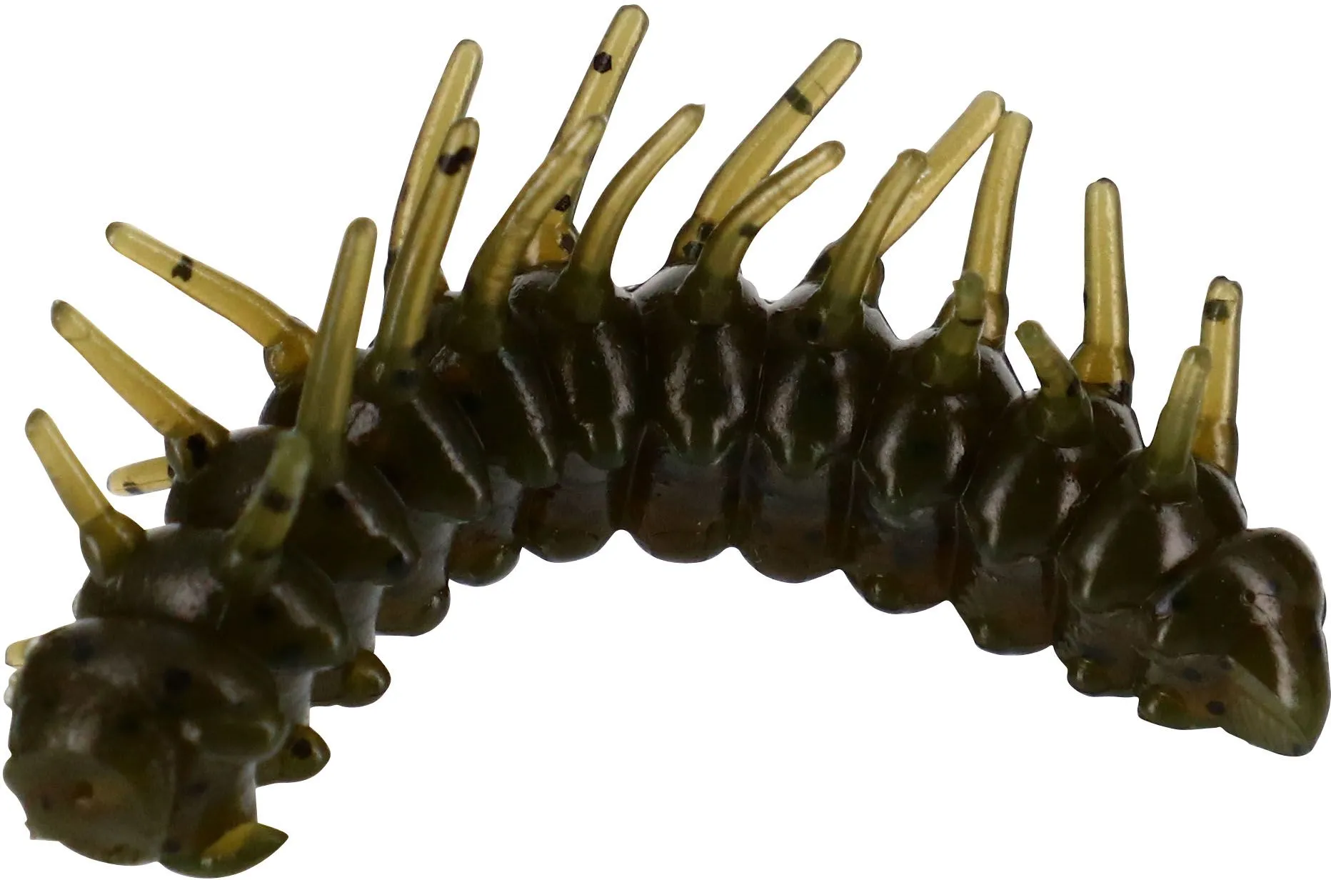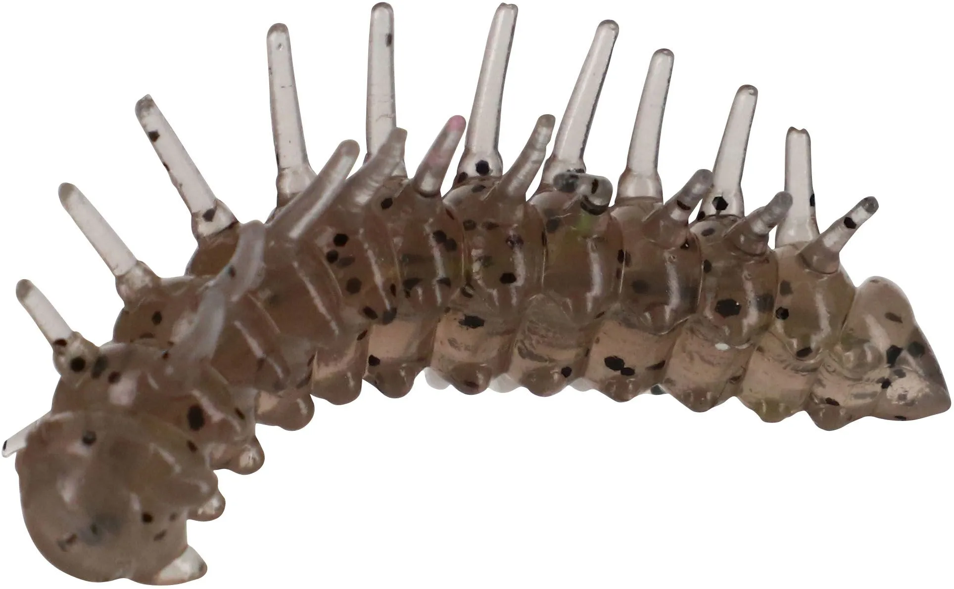 Our experience targeting river chub with imitation insects and competition lure fishing for trout has resulted in the incredible Magic Larva. The bristles generate a gliding smooth actin that works well on reservoirs or being allowed to drift down stream on rivers. Reservoir and river trout find this little mouthful truly irresistible. Can be fished with a micro jig head or midwater with a lightly loaded hook and a tungsten bullet or on the surface with a light hook like a Finesse Down Shot. To add even more appeal the rubber has been impregnated to the core with a salmon egg attractor.