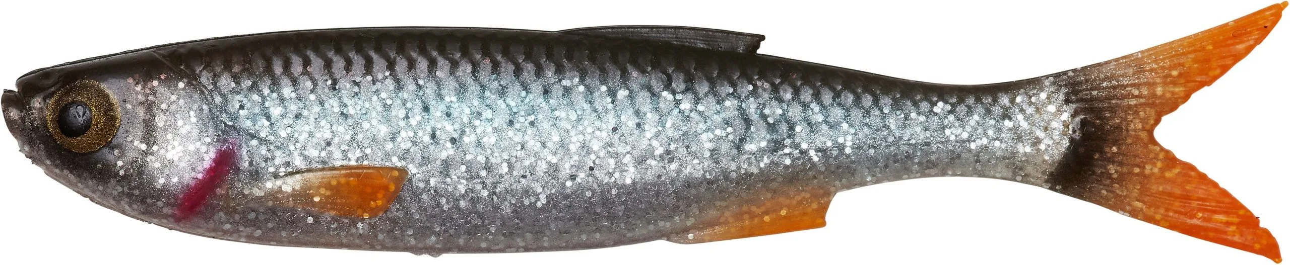 Crafted and designed by Mads Grosell. The lure profile is inspired by a bleak with a big realistic soft eye and perfect details. The super thin body enables the lure to swim amazingly lifelike rigged side down on jig heads or drop shots. The tool making, handcrafted details and painting sets new standards for soft lure making!